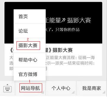 2、点击菜单栏【网站导航】——选择【摄影大赛】